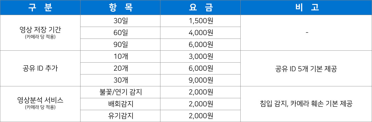※ 가정용 CCTV는 별도 견적 제공으로 문의해 주시면 자세히 안내드리겠습니다.